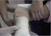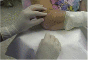 Bild 4: Darstellung einer Gelenkspunktion. Unter Röntgensicht gelingt die Punktion meist sehr schnell.