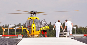 Bei Hubschraubereinsätzen von z.B. Schwerverletzten wird bereits am Hubschrauberlandeplatz das Einsatzteam bei der Durchführung des Patiententransportes in den Schockraum unterstützt und der Patient in den Schockraum überstellt.